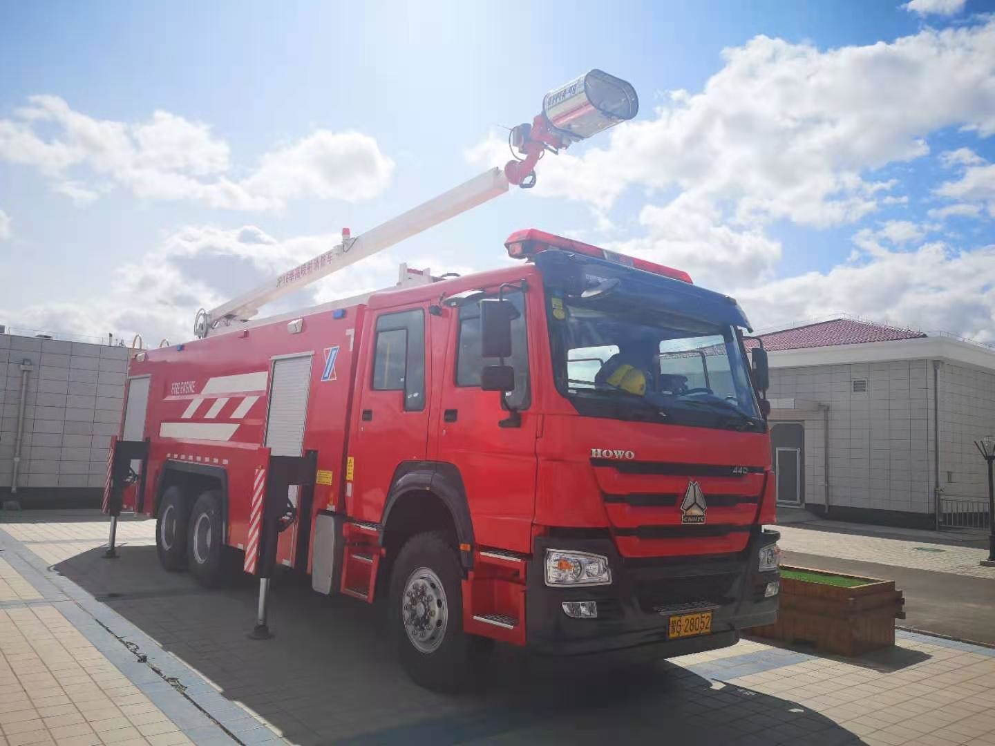 HOWO marca 460hp 10 ruedas 18M Torre de agua telescópica hidráulica Camión contra incendios con 10t de agua y 2t de espuma